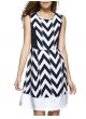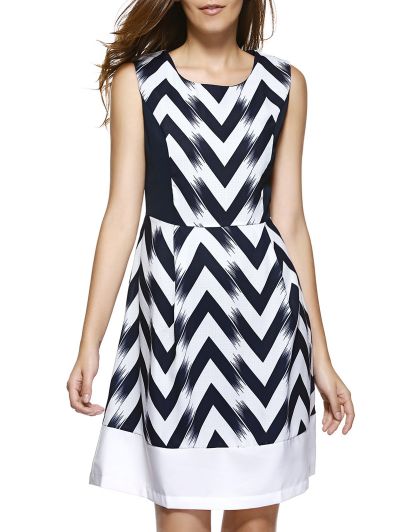 时尚之字形条纹和火焰无袖连衣裙的妇女